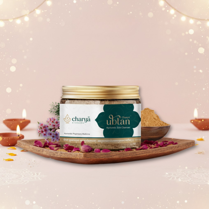 Charya Ubtan (50g): Gently exfoliates, removes tan, and softens skin. Mix with milk, water, or rose water according to your skin type.