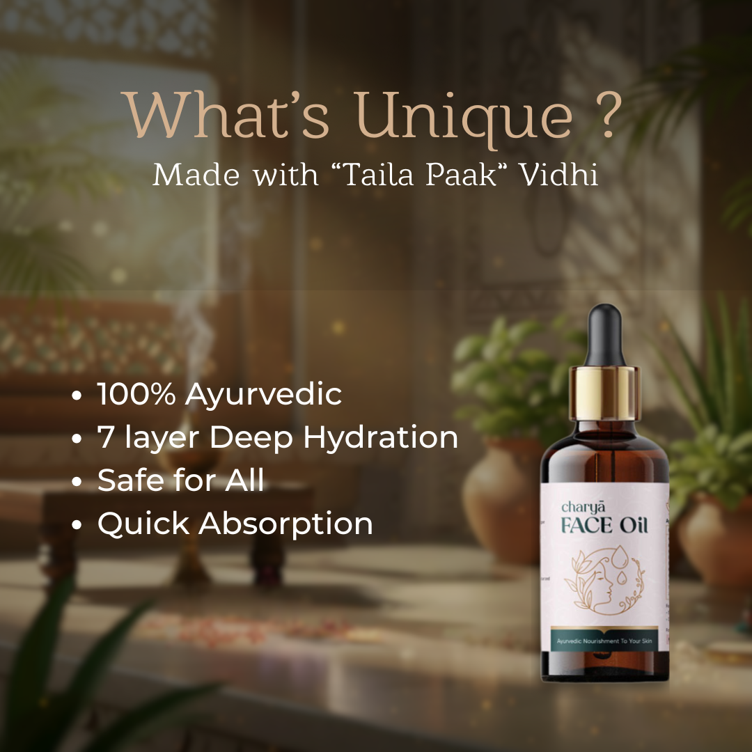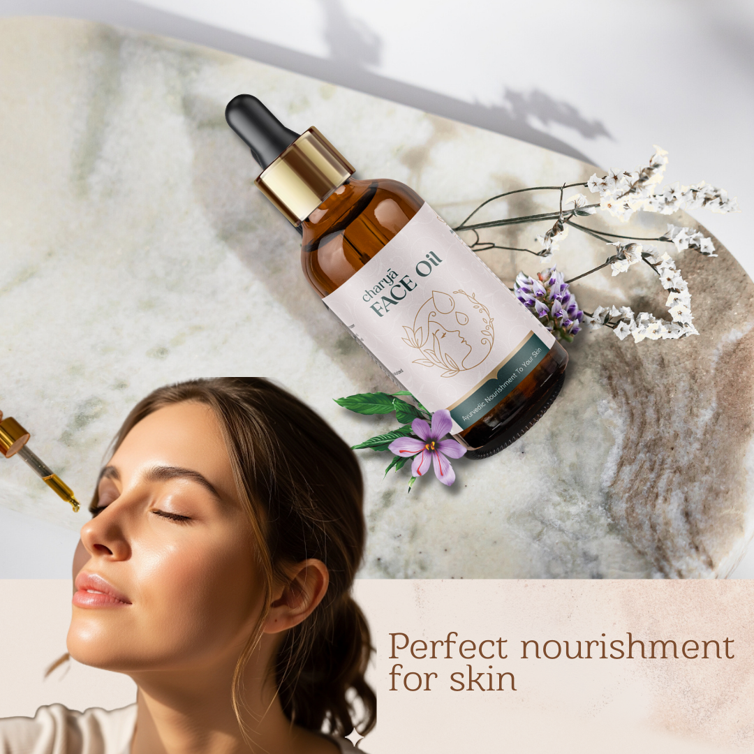 Charya Ayurvedic Face oil is a medicated ayurvedic oil specially formulated to provide optimal care and nourishment to the skin.